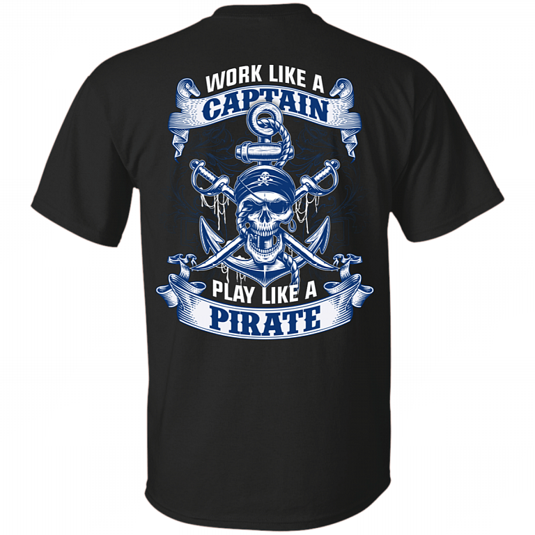 Work Like A Captain Play Like A Pirate Print On Back T-Shirt – Pirates Shirt