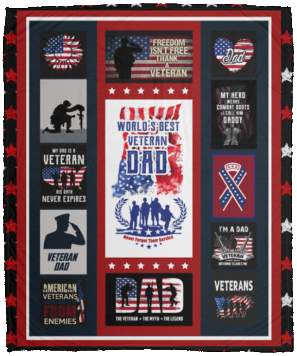 World Best Veteran Dad Happy Father’s Day Fleece Blanket – Premium Sherpa Blanket- Woven Blanket
