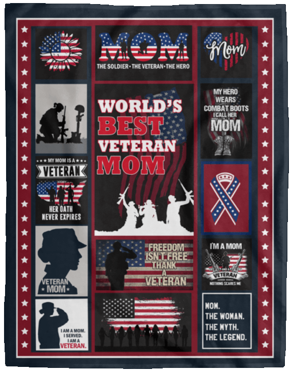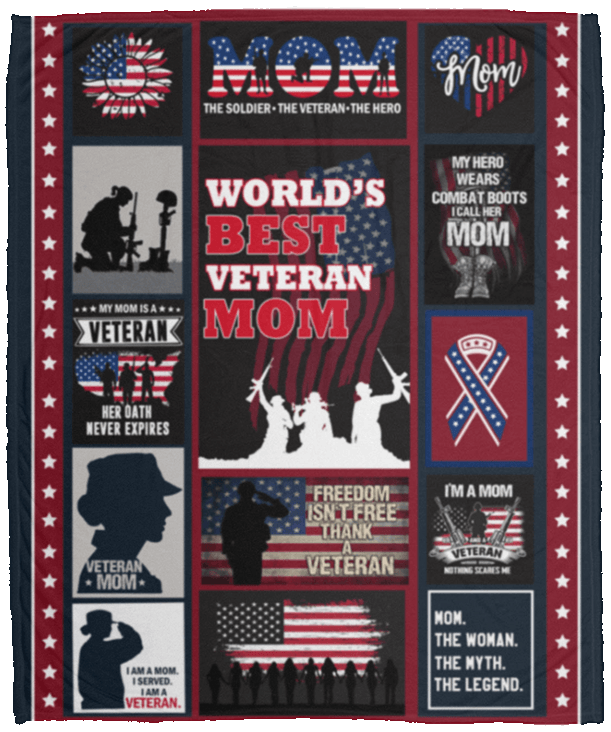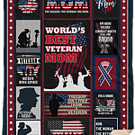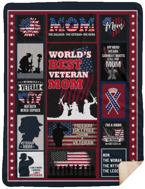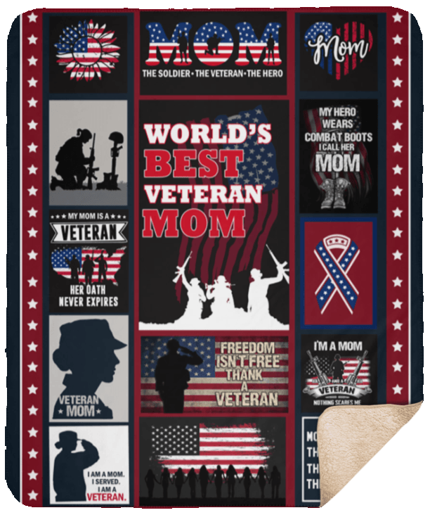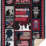 World Best Veteran Mom Happy Mother’s Day Fleece Blanket – Premium Sherpa Blanket- Woven Blanket
