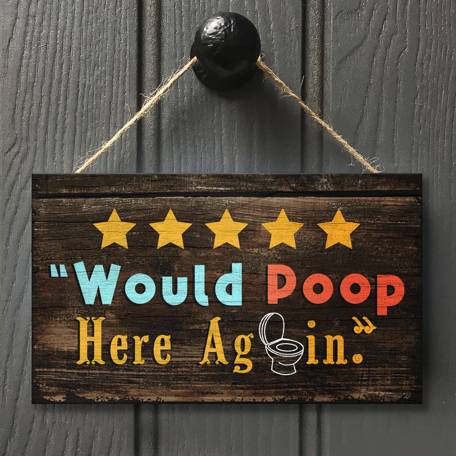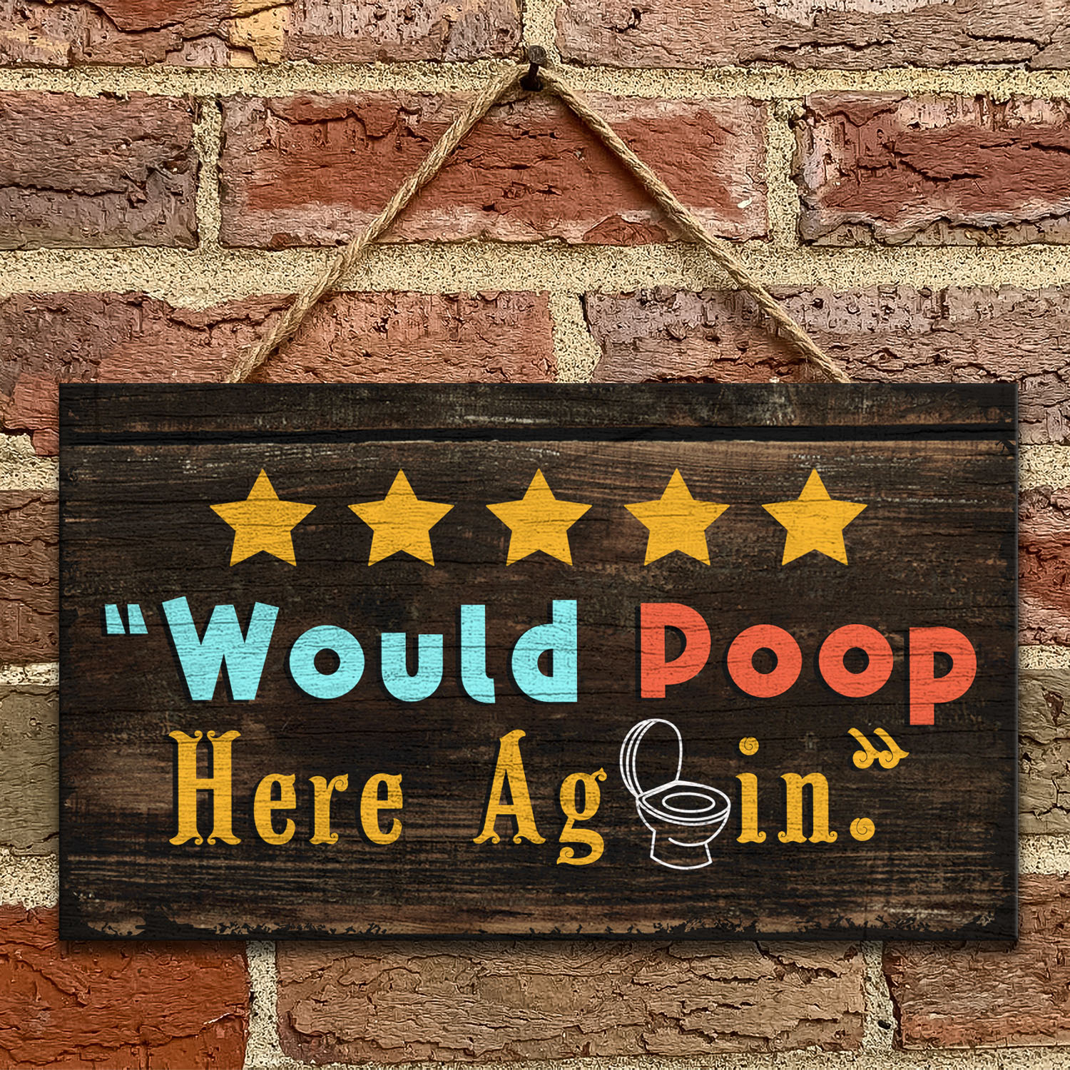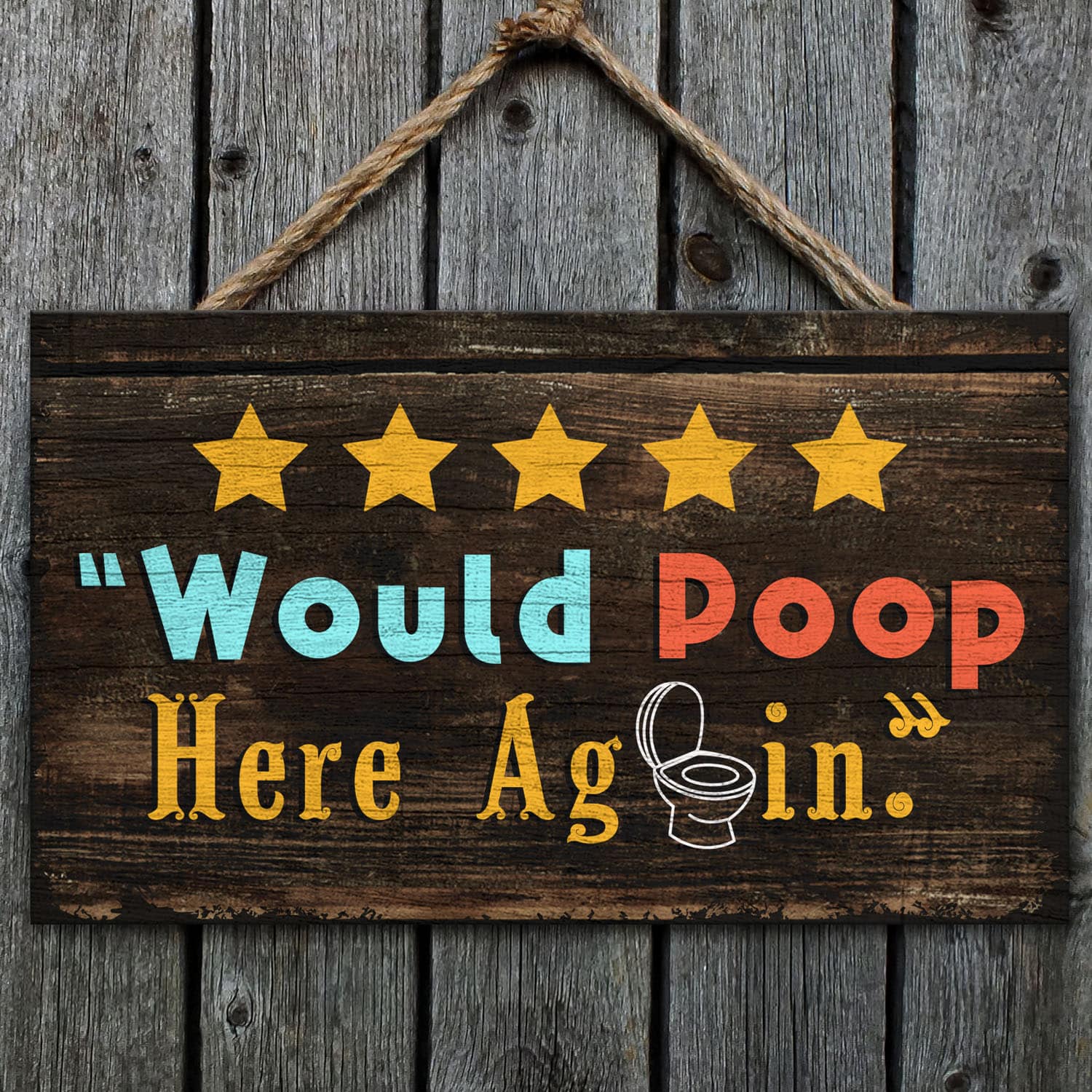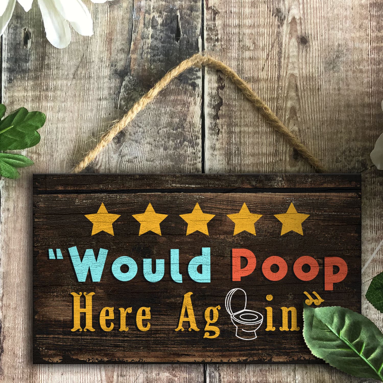 Let’s Shop 5 Stars Would Poop Here Again Bathroom Wooden Door Sign – Bathroom Sign – Restroom Sign Decor!