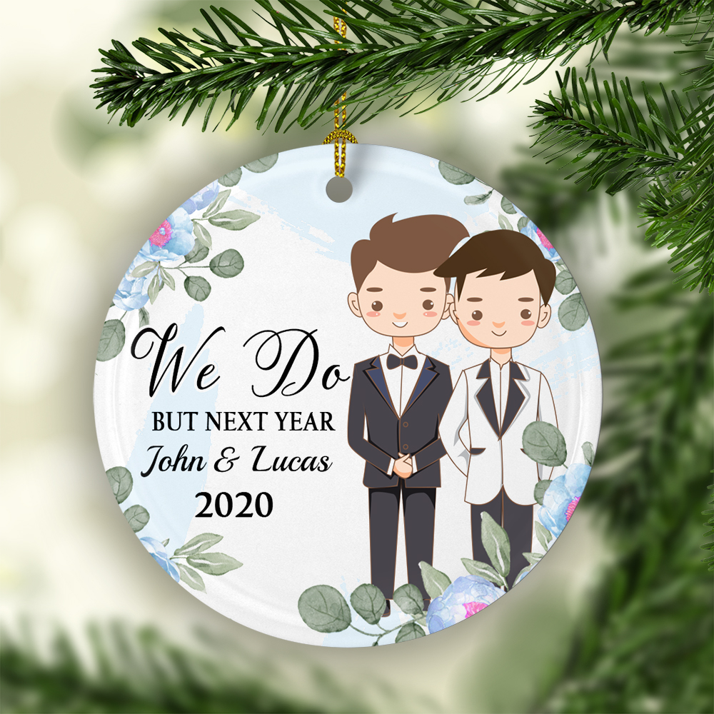 Let’s Shop I Do Next Year 2020 Personalized Gift Gay Wedding Ornament – Holiday Flat Circle Ornament!
