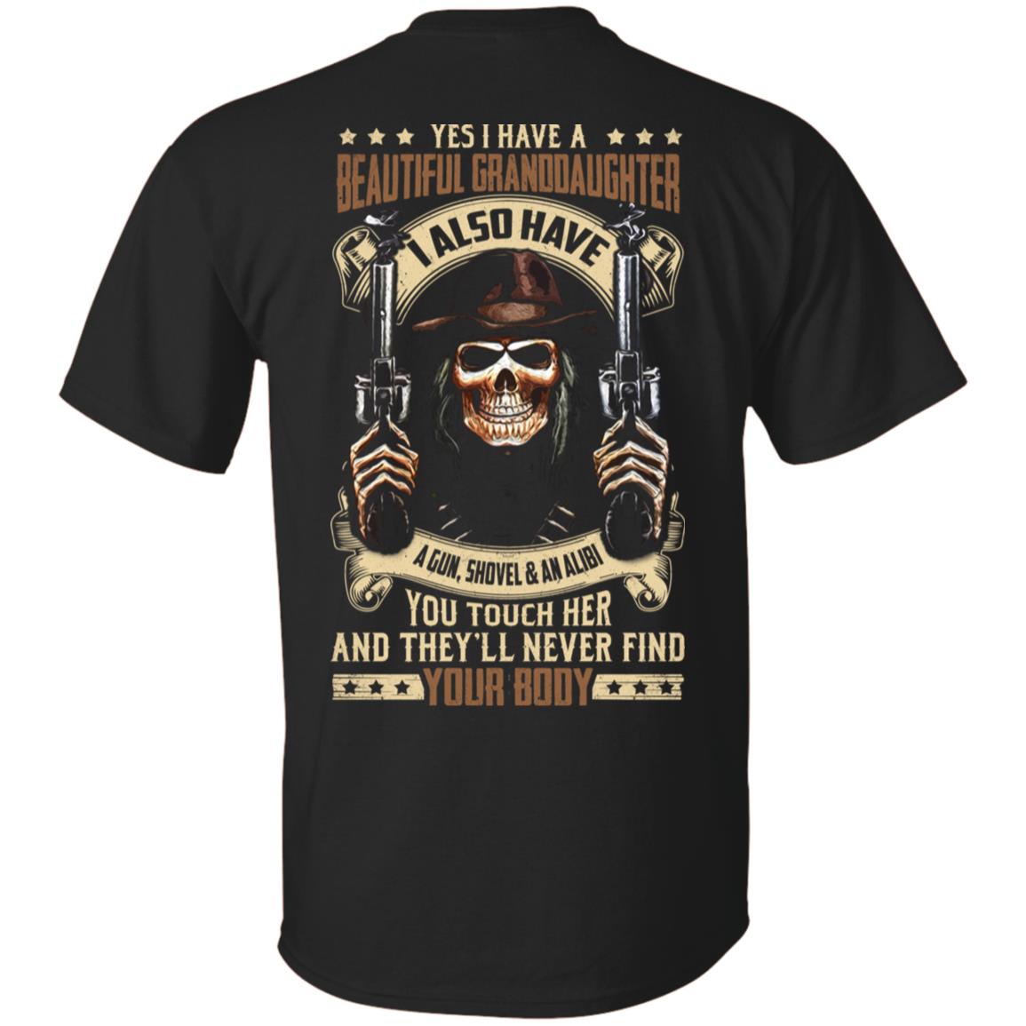 Yes I Have A Beautiful Granddaughter I Also Have A Gun Shovel An Alibi Print On Back T-Shirt