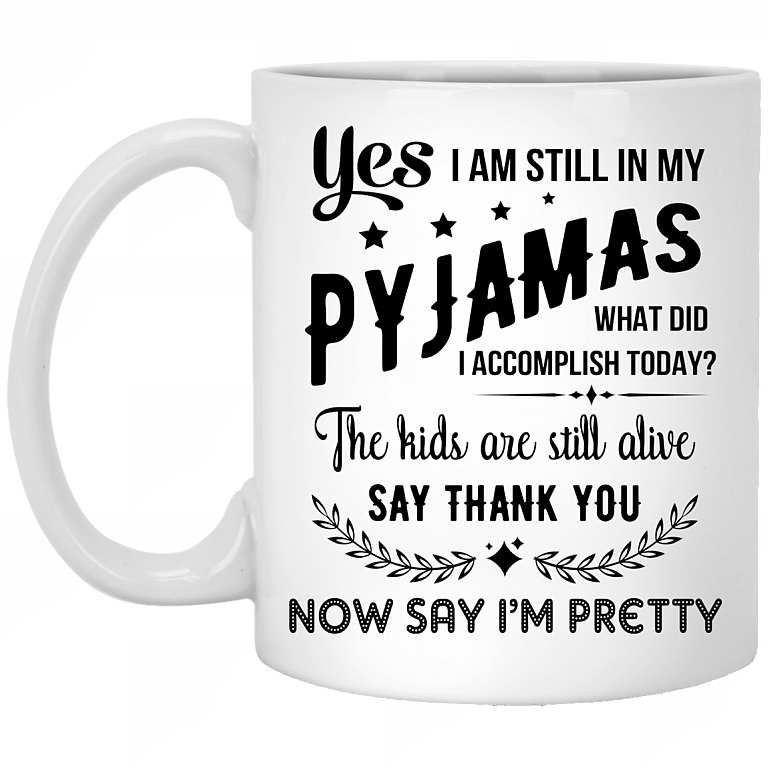 Yes I’m Still In My Pajamas Mug – The Kids Are Alive Say Thank You Now Say I’m Pretty – Coffee Mug For Mom – Mother’s Day Gift