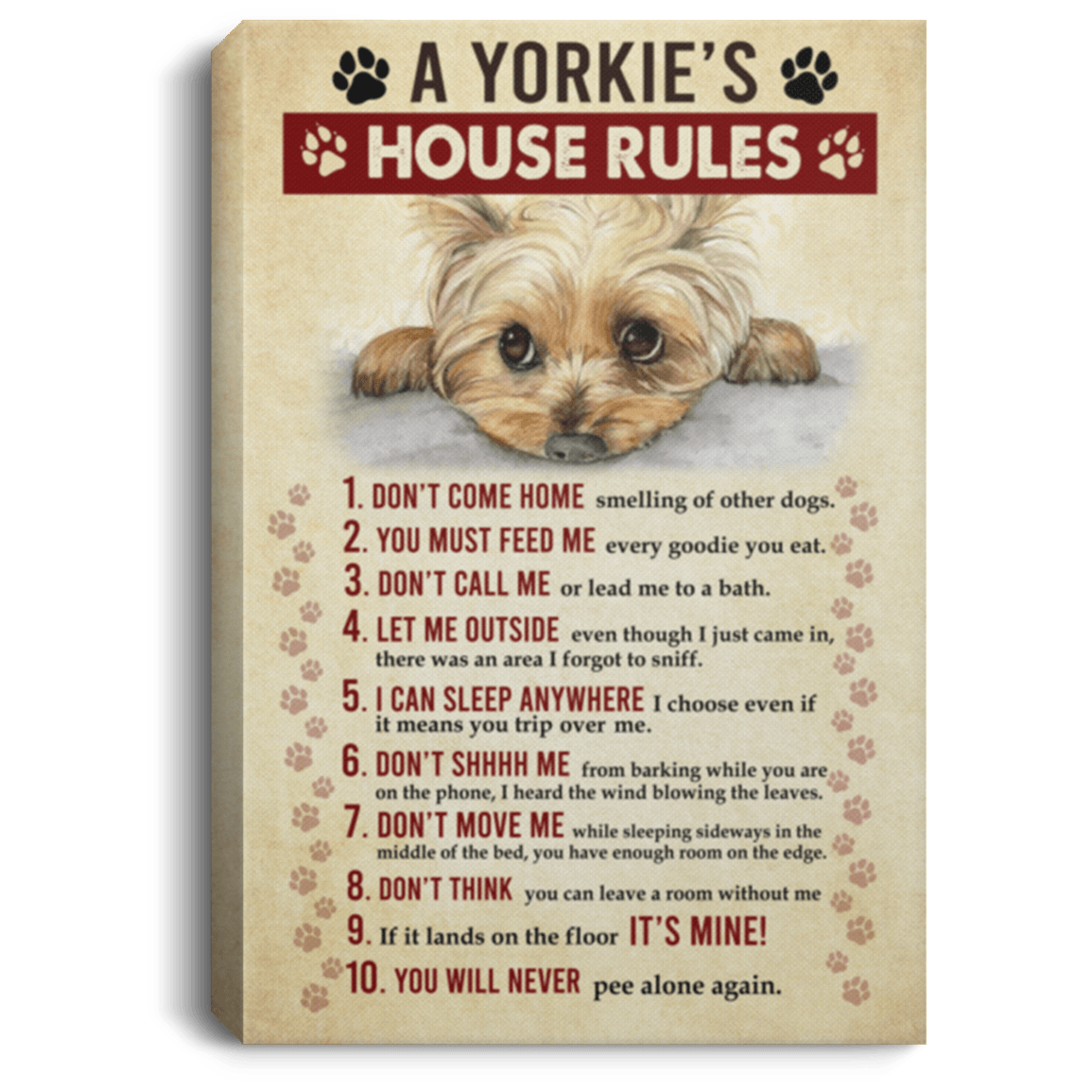 A Yorkie’s House Rules Gallery Wrapped Framed Canvas – Unframed Poster – Home Decor Wall Art