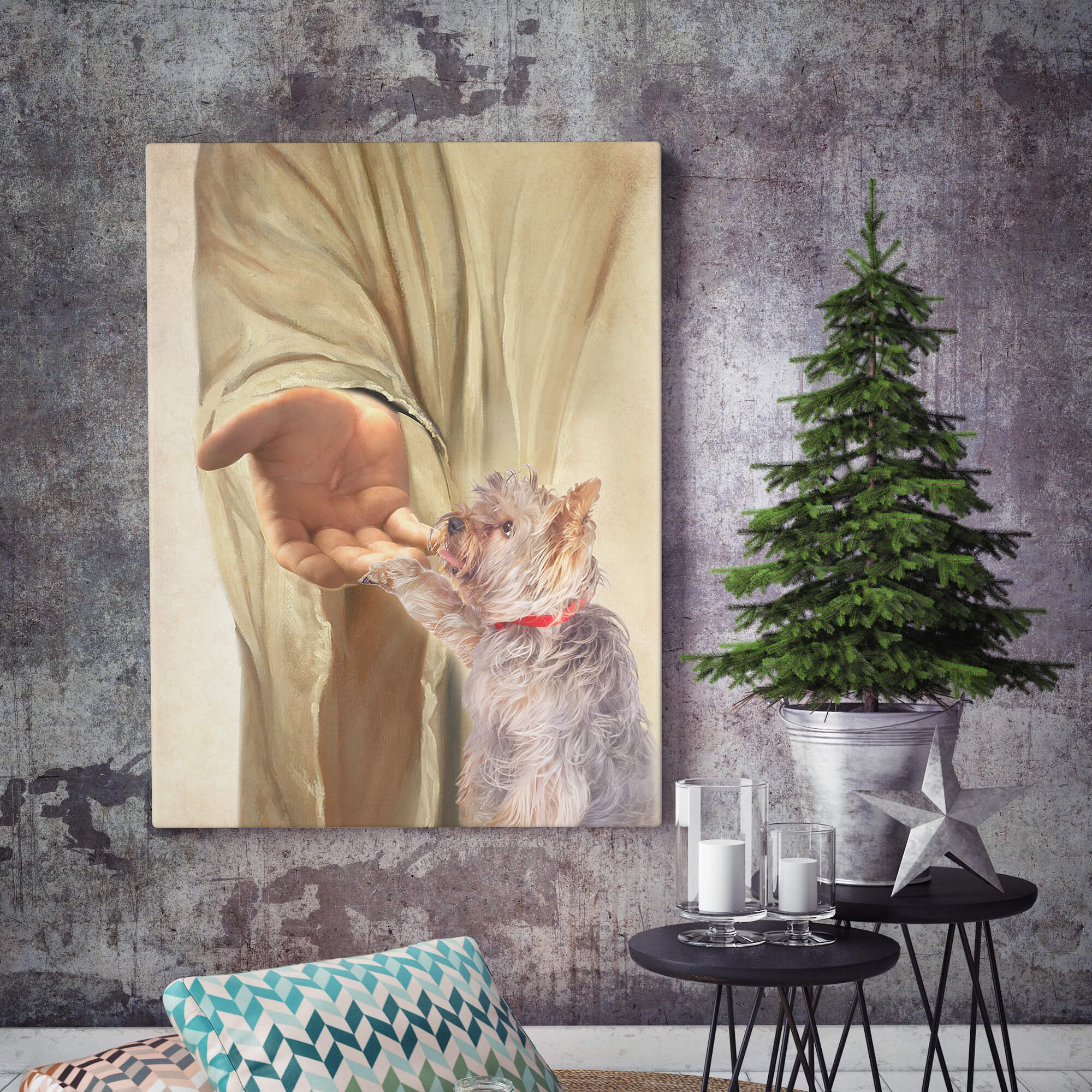 Let’s Shop Yorkshire Terrier Take My Hand Jesus Gallery Wrapped Framed Canvas Prints – Dog Memorial Poster – Home Decor!