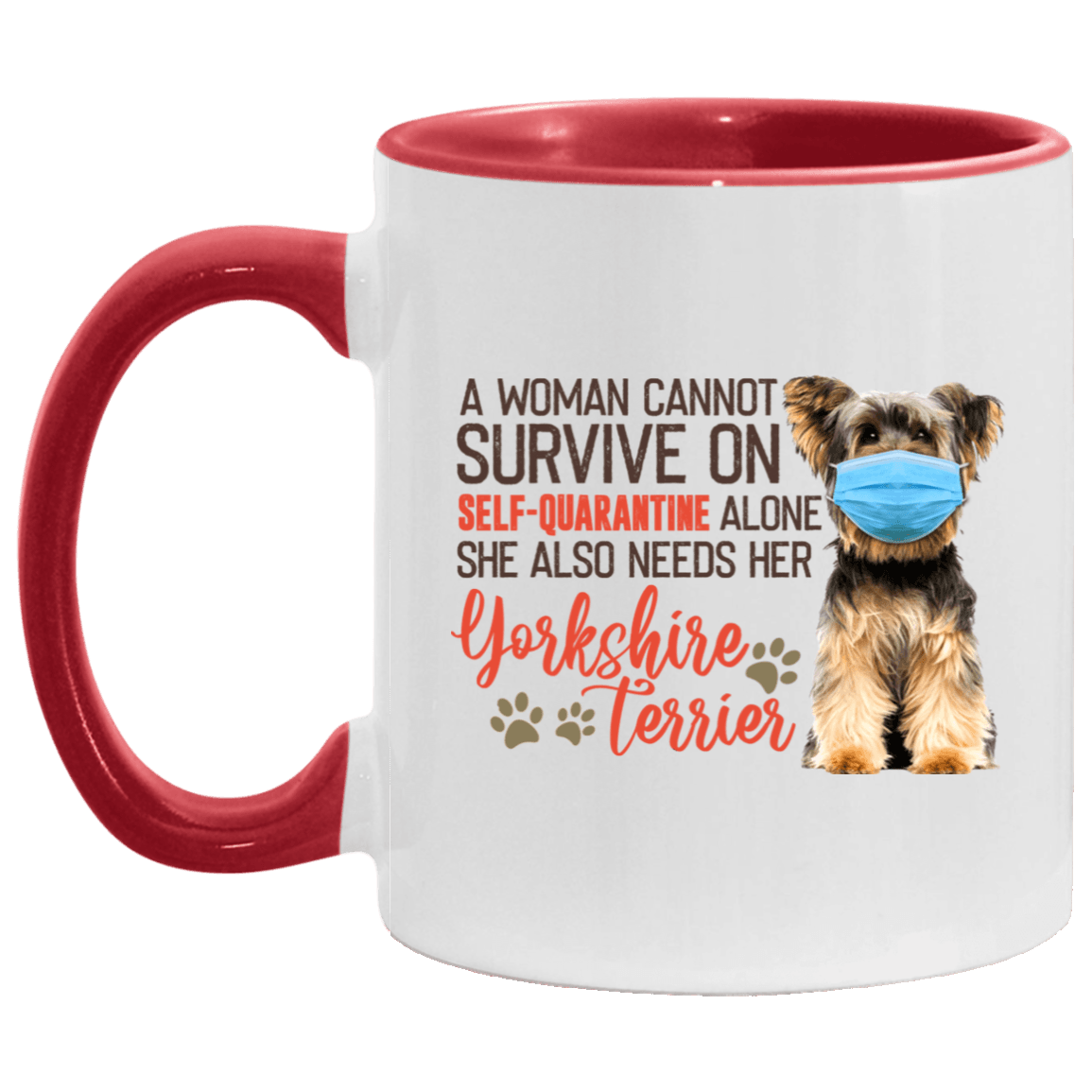 Shop A Woman Cannot Survive On Self-Quarantine Alone She Also Needs Her Yorkshire Terrier Accent Mug – Coffee Mug.