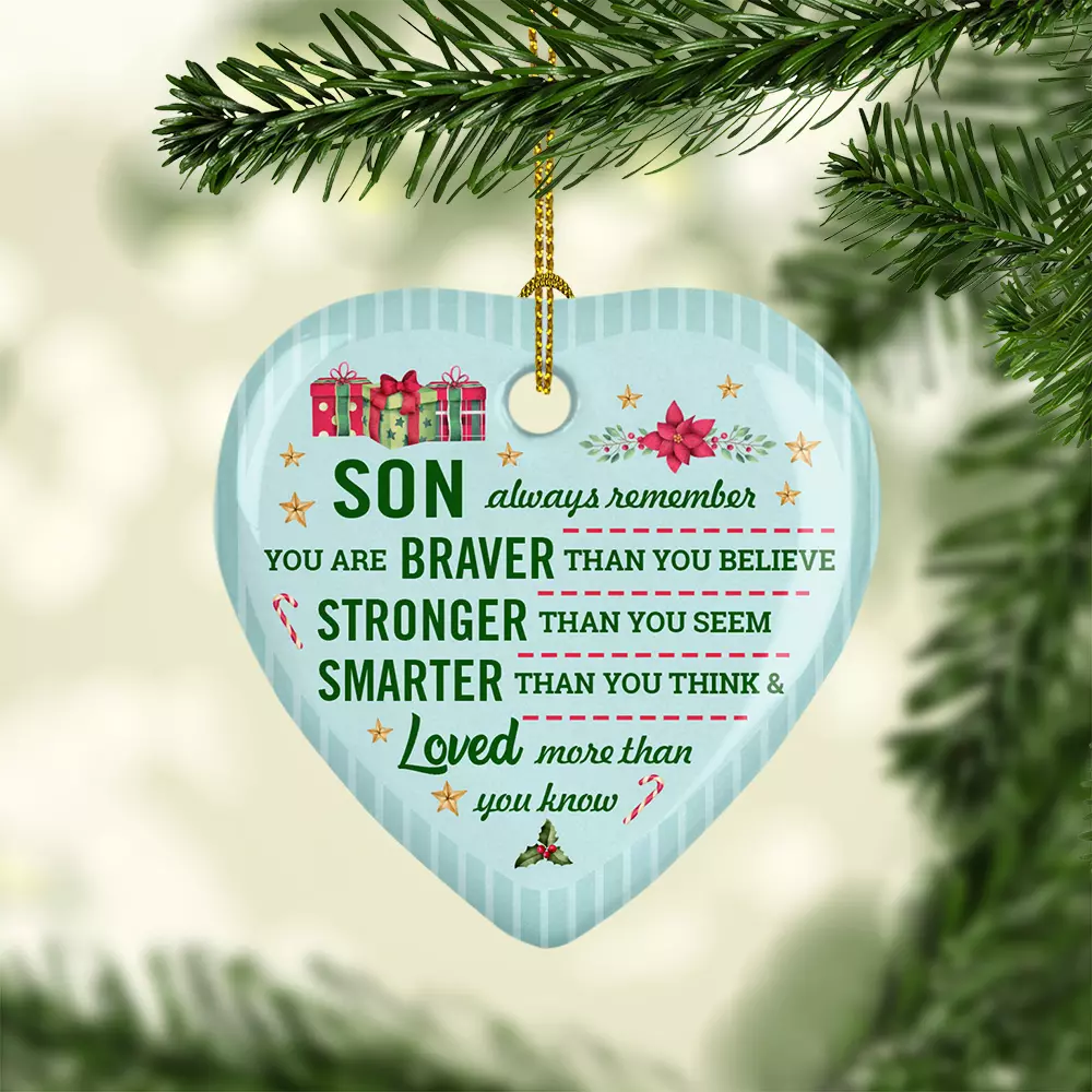 Let’s Shop Remember You Are Braver Stronger Smarter Son Christmas Flat Holiday Heart Ornament!