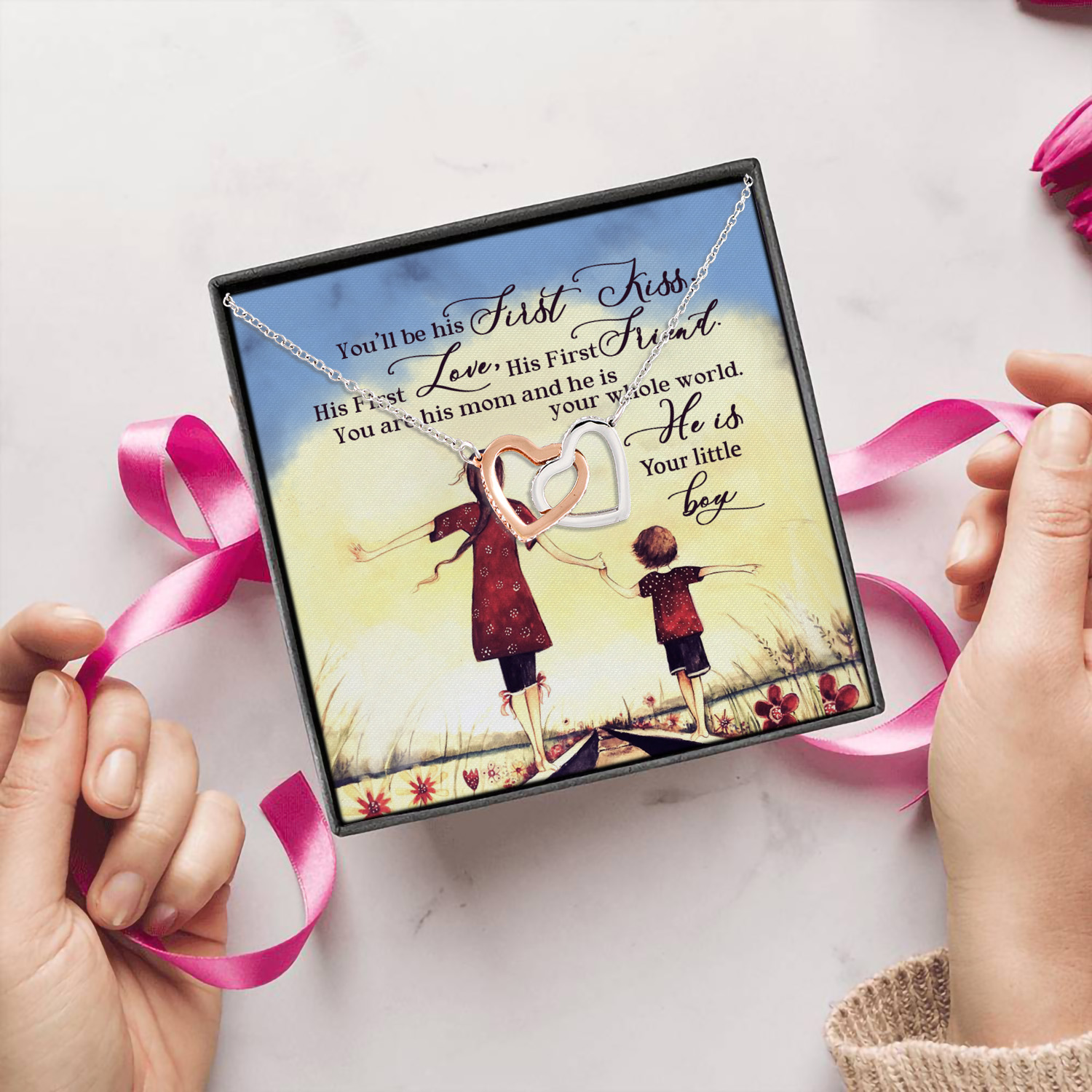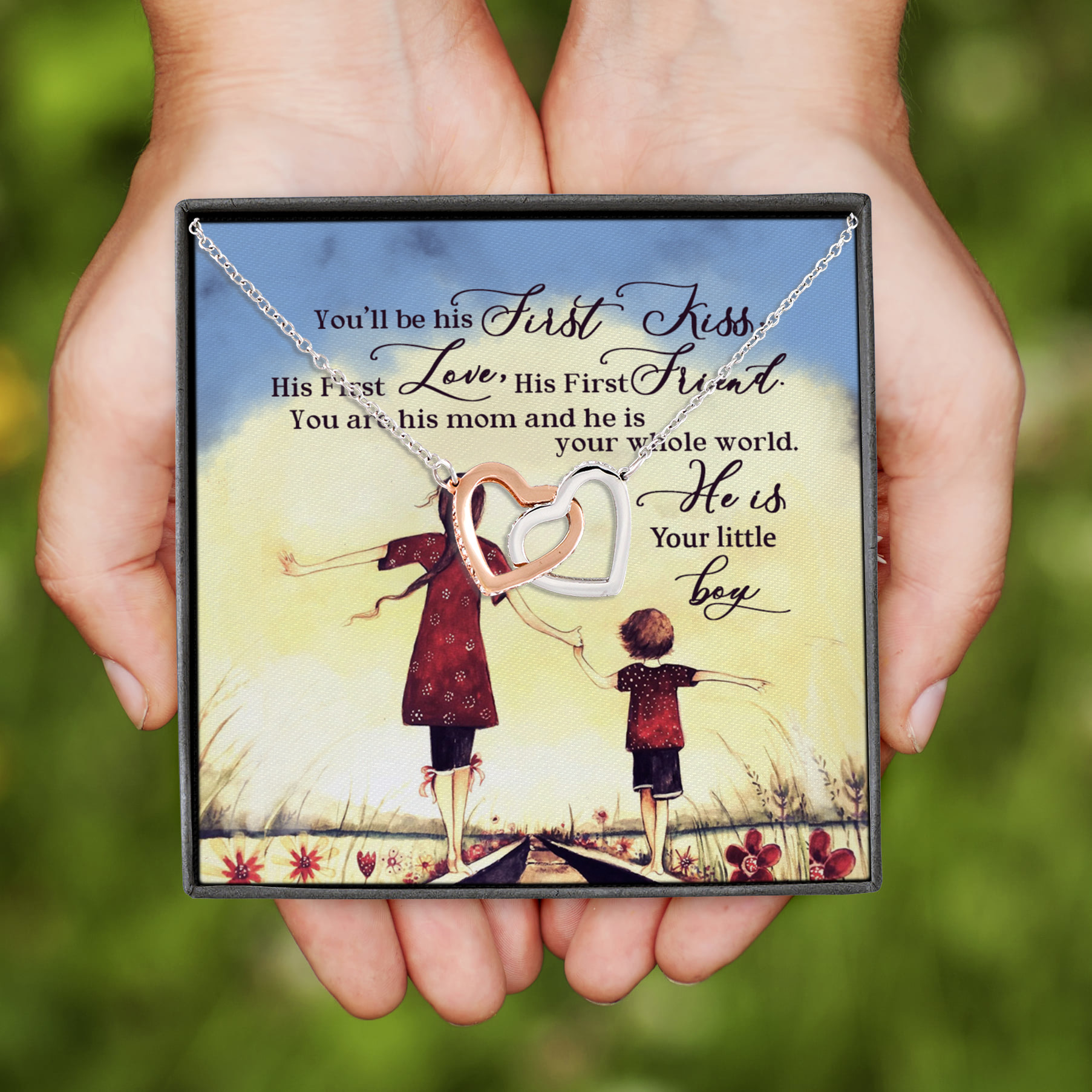 Let’s Shop You Will Be His First Kiss His First Love His First Friend You Are His Mom Interlocking Hearts Pendant Necklace!