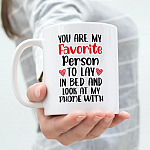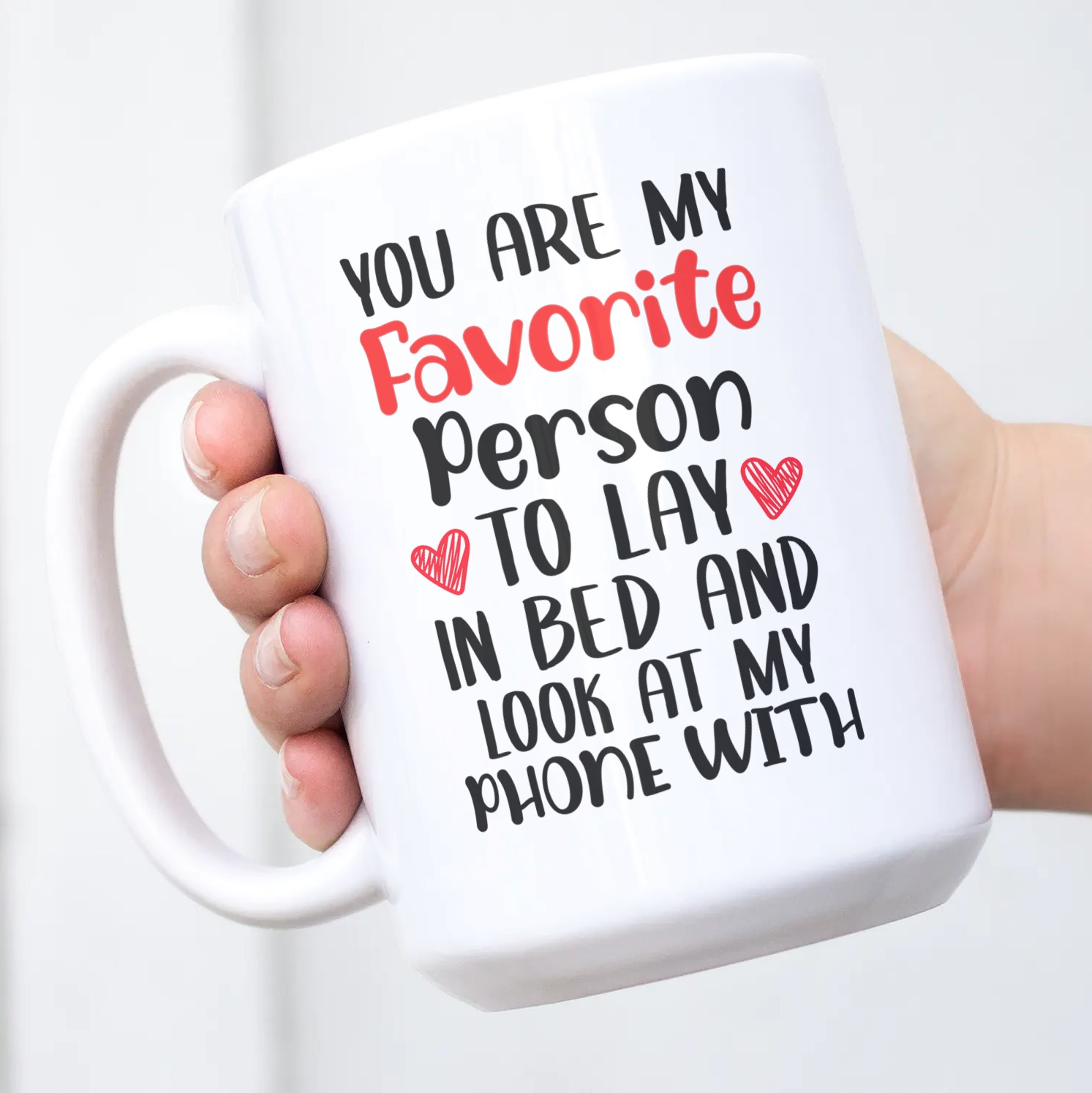 Let’s Shop You Are My Favorite Person To Lay In Bed And Look At My Phone With Coffee Mug – Valentine’s Day Couple Gift!