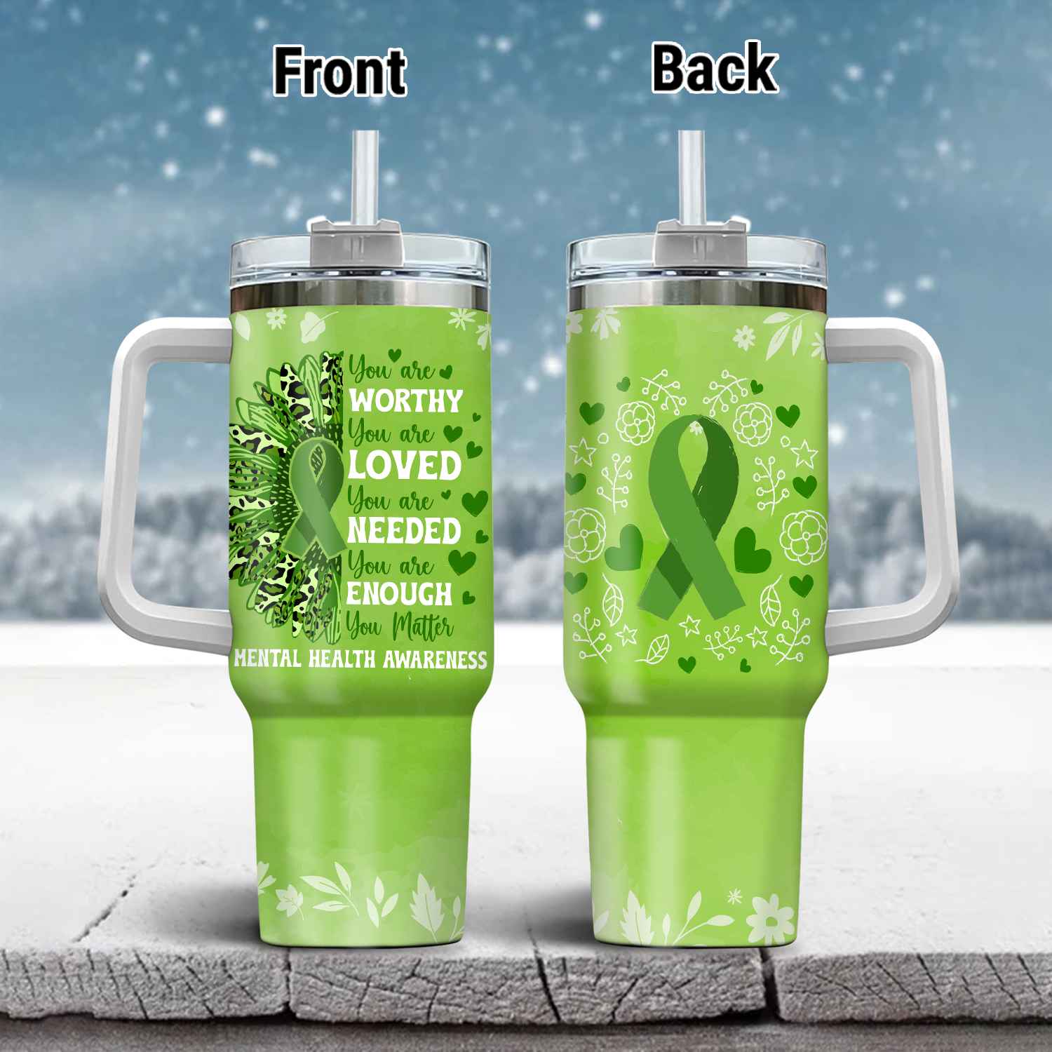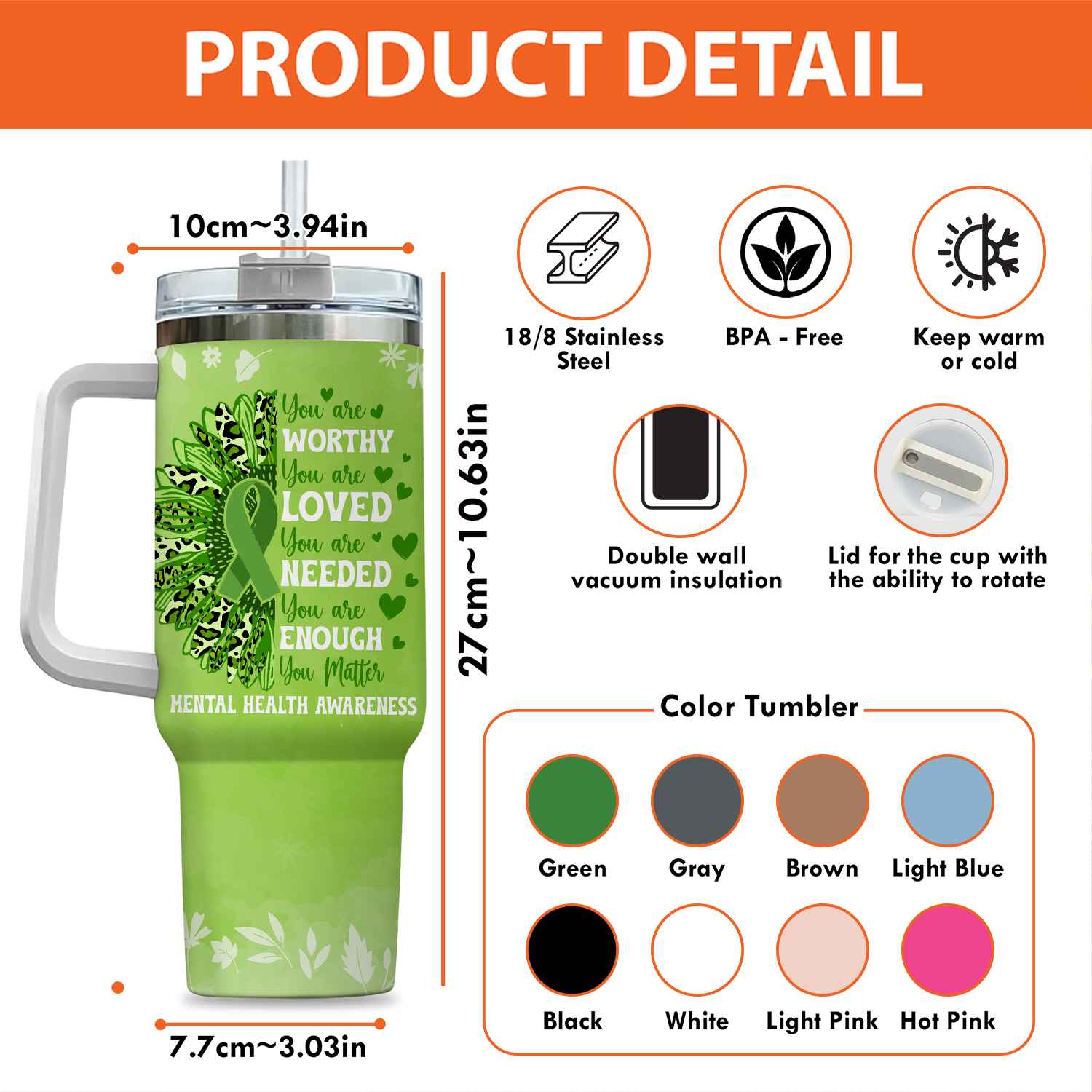 Let’s Shop You Are Worthy You Are Loved You Are Needed Mental Health Awareness Insulated Tumbler Cup With Handle and Straw!