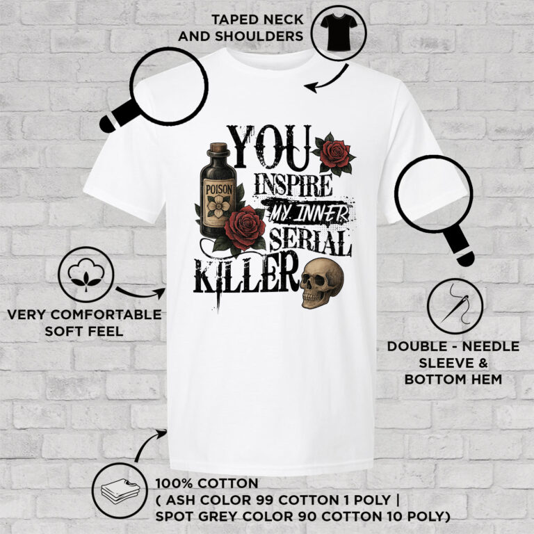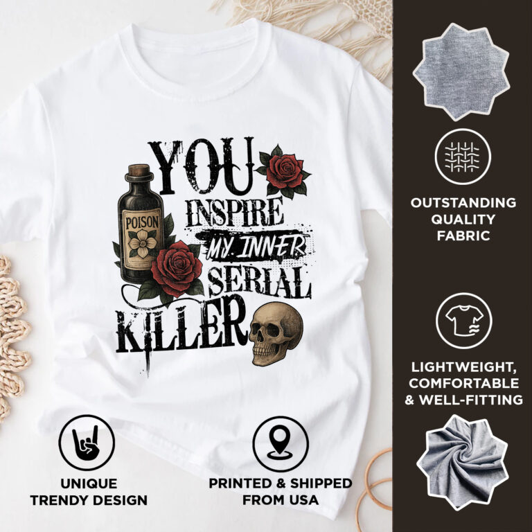 Are you spending too much time to find creative merchandise for you or suitable & special gifts for your mommy, your daddy, your son, your daughter, your children, your friends or someone you love? The struggle is over because we have various You Inspire My Inner Serial Killer Shirt, You Inspire My Inner Serial Killer Tshirt, You Inspire My Inner Serial Killer Womens Shirt, You Inspire My Inner Serial Killer T-Shirt, Funny Serial Killer Shirt, Skull Humor Shirt, Sarcastic V-Neck Tee which will make perfect presents for your beloveds. In order to make your present stand out, we have created lots of unique and awesome customized photo gifts & personalized designs.