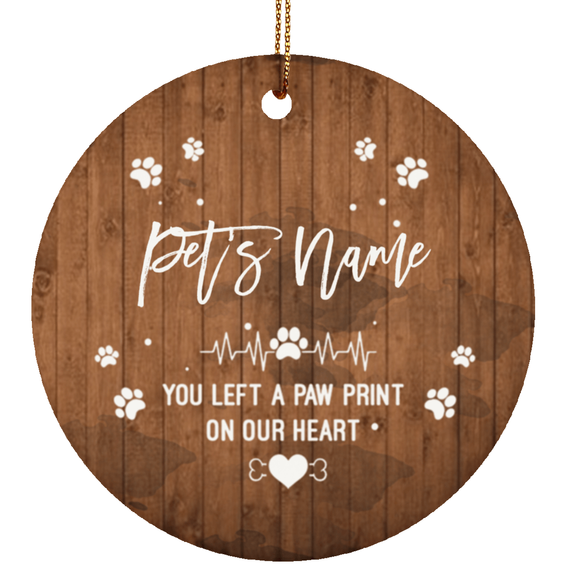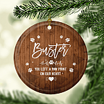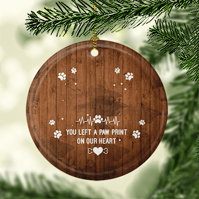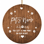 Shop You Left Paw Prints On Our Heart Flat Circle Porcelain Ceramic Custom Personalized Dog Memorial Christmas Tree Ornament.