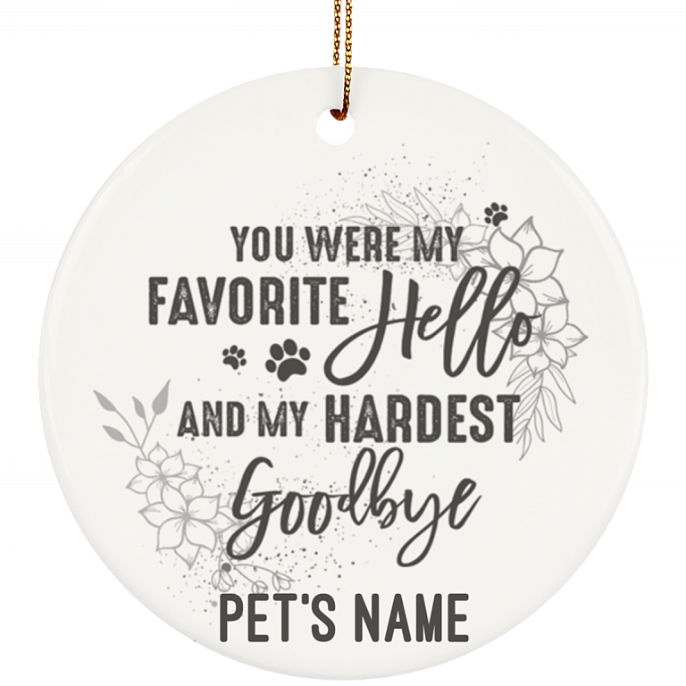 You Were My Favorite Hello And My Hardest Goodbye Flat Circle Porcelain Ceramic Personalized Dog Memorial Christmas Tree Ornament