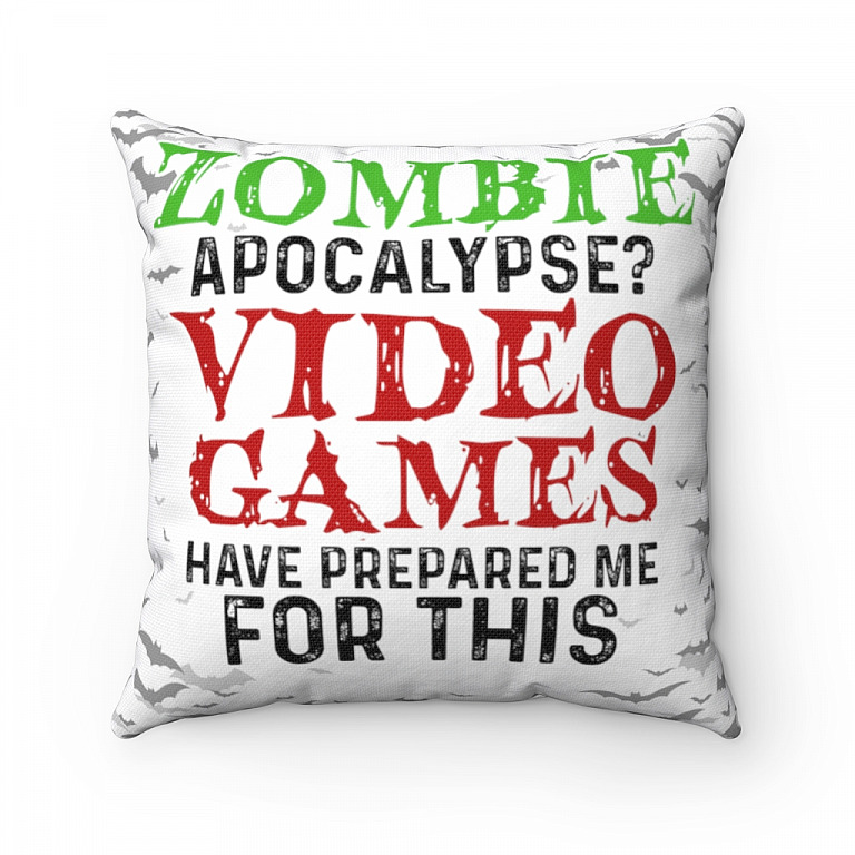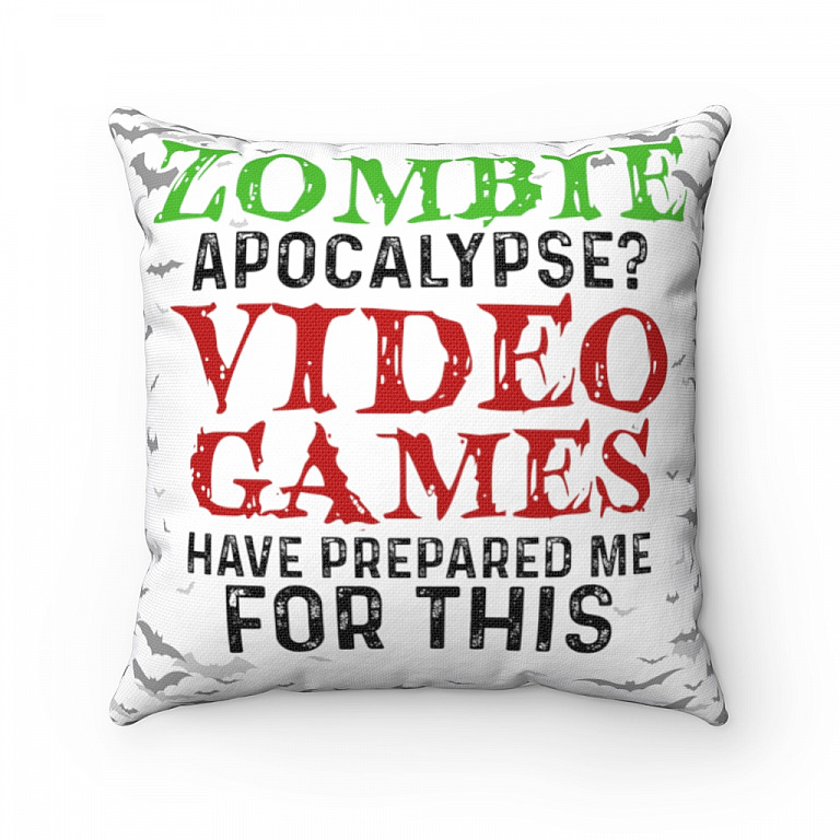 Let’s Shop Zombie Apocalypse Video Games Prepared Me Throw Pillow – Indoor Outdoor Cushion – Zombie Pillow!